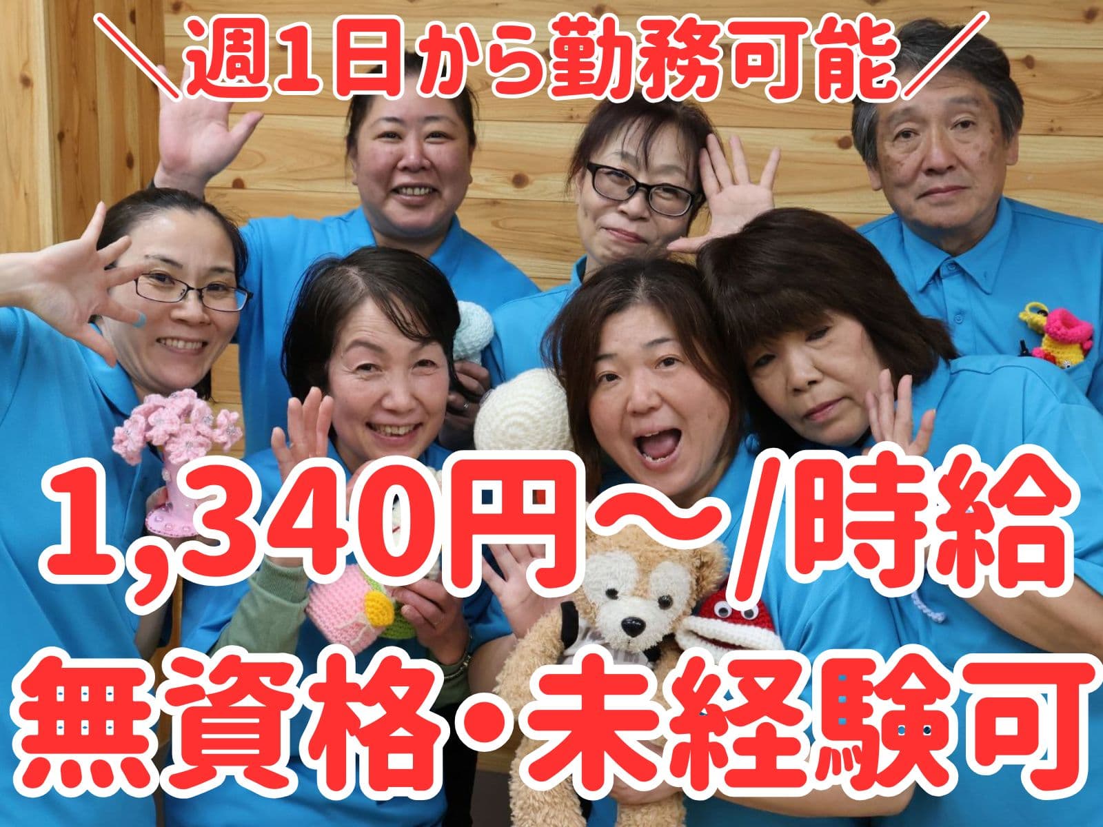 大工作業やミシン作業等、作業的活動が豊富なデイサービスです ☆ 他のデイサービスではあまり見ない一生懸命で笑顔あふれるご利用者さんと一緒に楽しみながらお仕事をしてみませんか?とても貴重な体験ができ、職員も利用者さんと一緒に楽しめるデイサービスです。 明るい職員が揃っており、職員一人一人の意見を元にデイサービス作りをしています♪現在、利用定員18名に対し介護職員5~6名+看護師と充足体制中。 一人一人のご利用者に深くかかわることができ、ご利用者の笑顔や生きがいを感じられるデイサービスです。人柄を元に採用している為、経験、未経験で採用の判断はしていませんので、明るく元気な方の採用を考えております。在職中の方は入職日相談可能です。 作業や小物作りに自信がなくても問題ありません。利用者さんと【一緒に】が大切です。職員も一緒に楽しめるデイサービスなので、是非、ご応募お待ちしております。