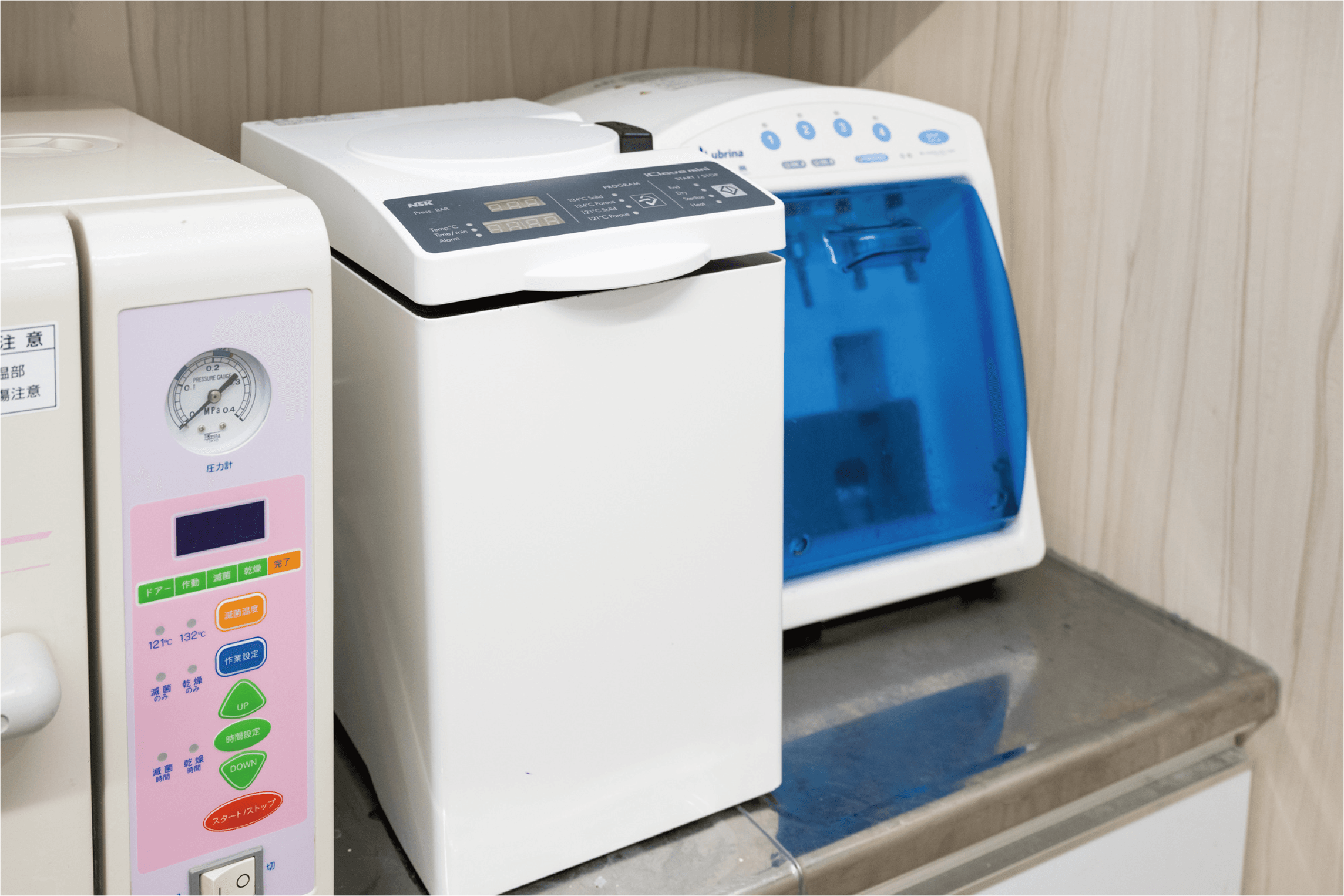 減菌作業やハンドピースの注油洗浄には器械を導入。職員の作業時間を短縮しています