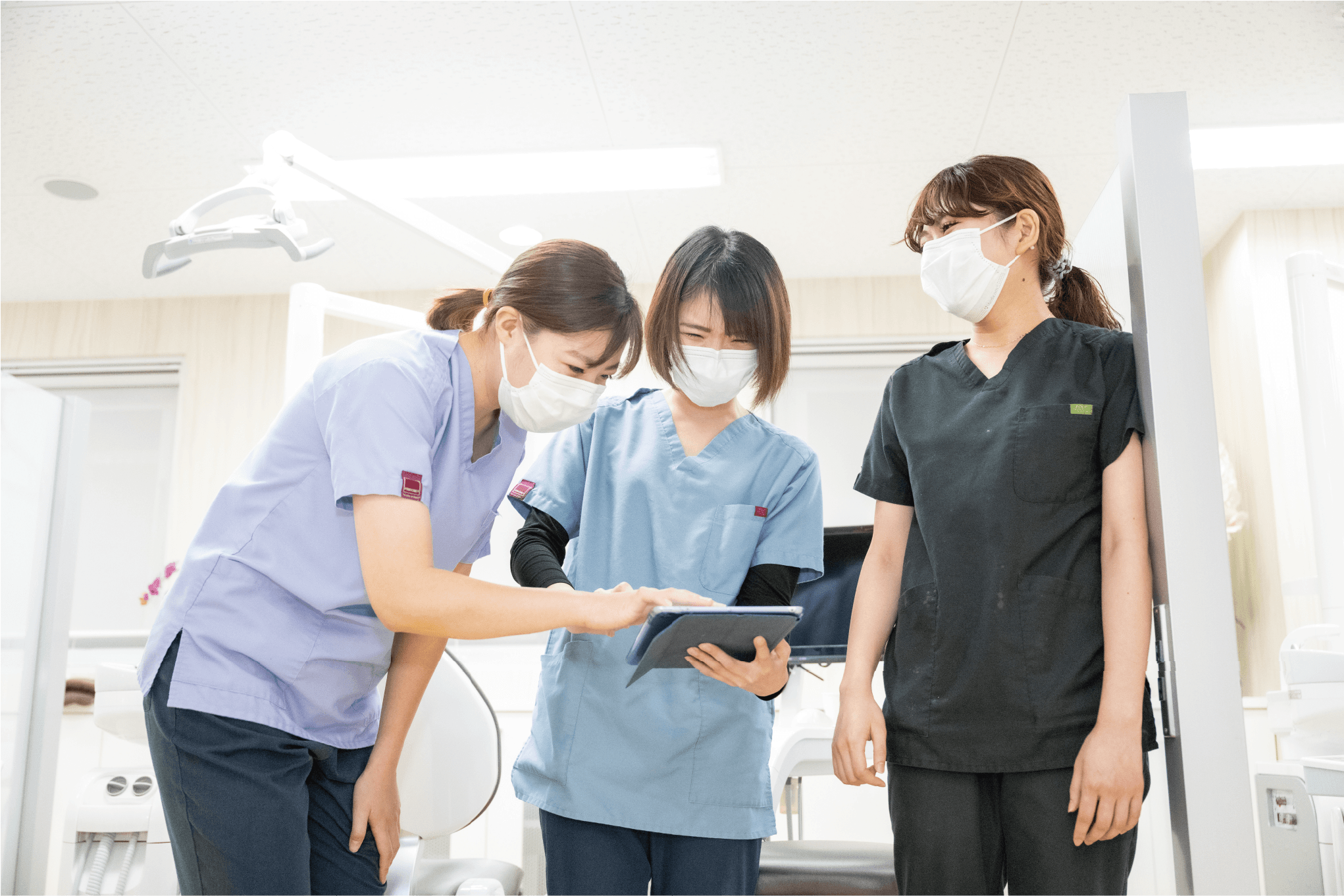 立川さくら歯科クリニックでは、ICTツールを利用して職員の作業効率を向上させています。勤怠はiPadで打刻でき、スマートフォンからも確認が可能です。また、チャットワークを導入しており、職員同士が円滑に連絡を取り合える環境を整えています。そのほか、有休の申請方法といった社内手続きをマニュアル化しており、オンライン上で確認できる点も利点です。職員はこれらのツールを活用しながら、スムーズに仕事を進められます。 歯科衛生士や歯科助手が専門職として仕事に専念できる点も魅力の一つ。業務負荷を軽減するための取り組みの一環として、タオルの管理を外部業者に委託しています。医療機関では、多くの患者さまに対応するため、タオルの使用量が多く、洗濯の頻度も高いことが特徴。洗濯・乾燥・たたみなどの一連の作業を省略することで、職員の身体的な負担が軽減され、働きやすさにつながっています。