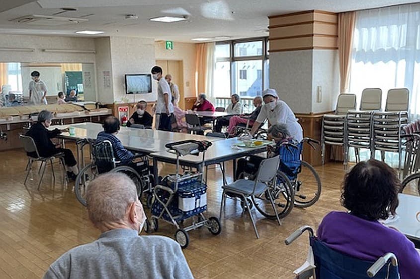 特別養護老人ホーム 尚和園は、職員の業務負担を軽減するため、ICT化を進めています。ナースコールと主任以上が所持するスマートフォン・介護ソフトを連動。ナースコールの発信元での会話が介護ソフトにテキストとして記録される仕組みです。すべてが完璧に入力されるわけではありませんが、わずかな修正で記録が完了。導入前と比較して記載時間が短縮しました。日々の記録には、看護師・介護職ともに介護ソフト「ブルーオーシャンノート」を活用。情報の共有や確認が簡単にできる体制を整えています。 くわえて、機器の導入も推進し、職員が働きやすい環境づくりに注力しています。床とベッドの両方にセンサーを設置しているほか、見守り介護ロボット「aams(アアムス)」も導入。離れた場所からでも利用者さまの動きや心拍数を確認できます。リフト活用の定着も目指しており、今後さらに身体への負荷が軽くなる見込みです。ICT化・機械化については、各職員の順応スピードを見極めながら徐々に進めているため、操作に自信がない方もご安心ください。