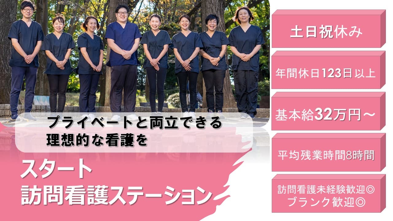私たちスタート訪問看護ステーションは、 「住み慣れたご自宅で安心して暮らせるようにサポートしたい」 という想いを胸に、地域密着で訪問看護を行っています。 訪問看護は、一人ひとりの利用者さまとじっくり関わることができ、「ありがとう」と直接感謝の言葉をいただけるやりがいの大きな仕事です。 病院とは違った看護の魅力を、ぜひ一緒に感じてみませんか? ✅ 働きやすさが自慢です 残業は月8時間程度 → ご家庭やプライベートと両立しやすい環境です 原付バイク・電動自転車の貸与あり → 移動も安心 研修・フォロー体制充実 → 訪問看護が初めての方も安心スタート ✅ こんな方にピッタリ! 病院勤務から一歩踏み出して、じっくり看護をしたい方 地域での看護にチャレンジしたい方 ワークライフバランスを大切にしたい方 仲間と協力しながら前向きに働ける方 ✅ スタッフの声 「病院では忙しく流れてしまう時間も、訪問看護では利用者さまとゆっくり関わることができます。 “あなたが来てくれてよかった”と言われる瞬間が本当に嬉しいです。」 🌱 あなたの看護が、誰かの暮らしを支える力になります 地域に根ざした温かい看護を、私たちと一緒に届けていきましょう。 未経験の方も大歓迎です!まずはお気軽にお問い合わせください。