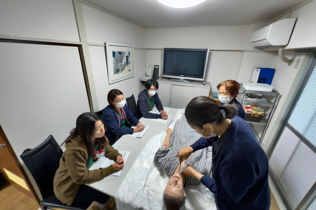 いちご訪問看護リハビリステーションは、経験が浅い方でも着実に慣れていける教育体制を整えています。入職後、まずは動画で介護保険制度を学び、記録業務についても習得。その後、同行訪問により現場業務を覚えていきます。最初の約1週間は先輩職員のケアを見学し、2週目以降からは新人職員も一緒に実践。同行者は固定しておらず、教育期間は新人職員の習熟度に合わせて調整しています。新人職員は複数の先輩職員から学べる機会があり、自分のペースで視野を広げていける環境です。 当事業所では、専門スキルを高めるための支援制度も整備しています。研修の参加や資格取得に必要な費用は事業所が負担。過去には、喀痰吸引や腹膜透析に関する研修を受講した職員もいます。職員が自分で見つけてきた研修も支援制度の対象としている柔軟さが特徴です。そのほか、事業所内で勉強会も開いており、症例検討をすることもあります。知識を深め、より質の高い看護の提供を目指したい方にとってぴったりな職場です。