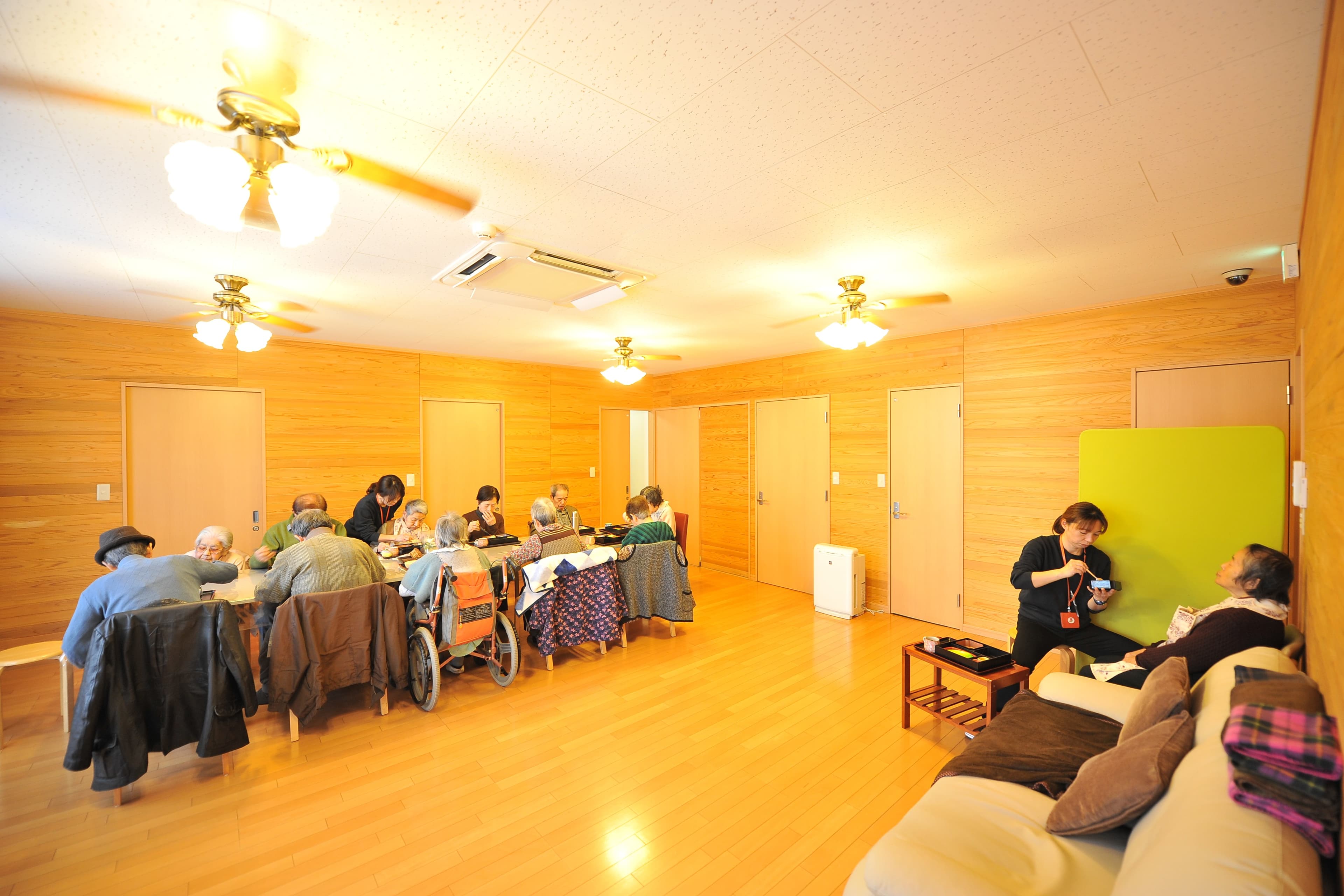 木の温もりを全面に感じられる落ち着いた空間で、利用者さまに安心感を提供できます