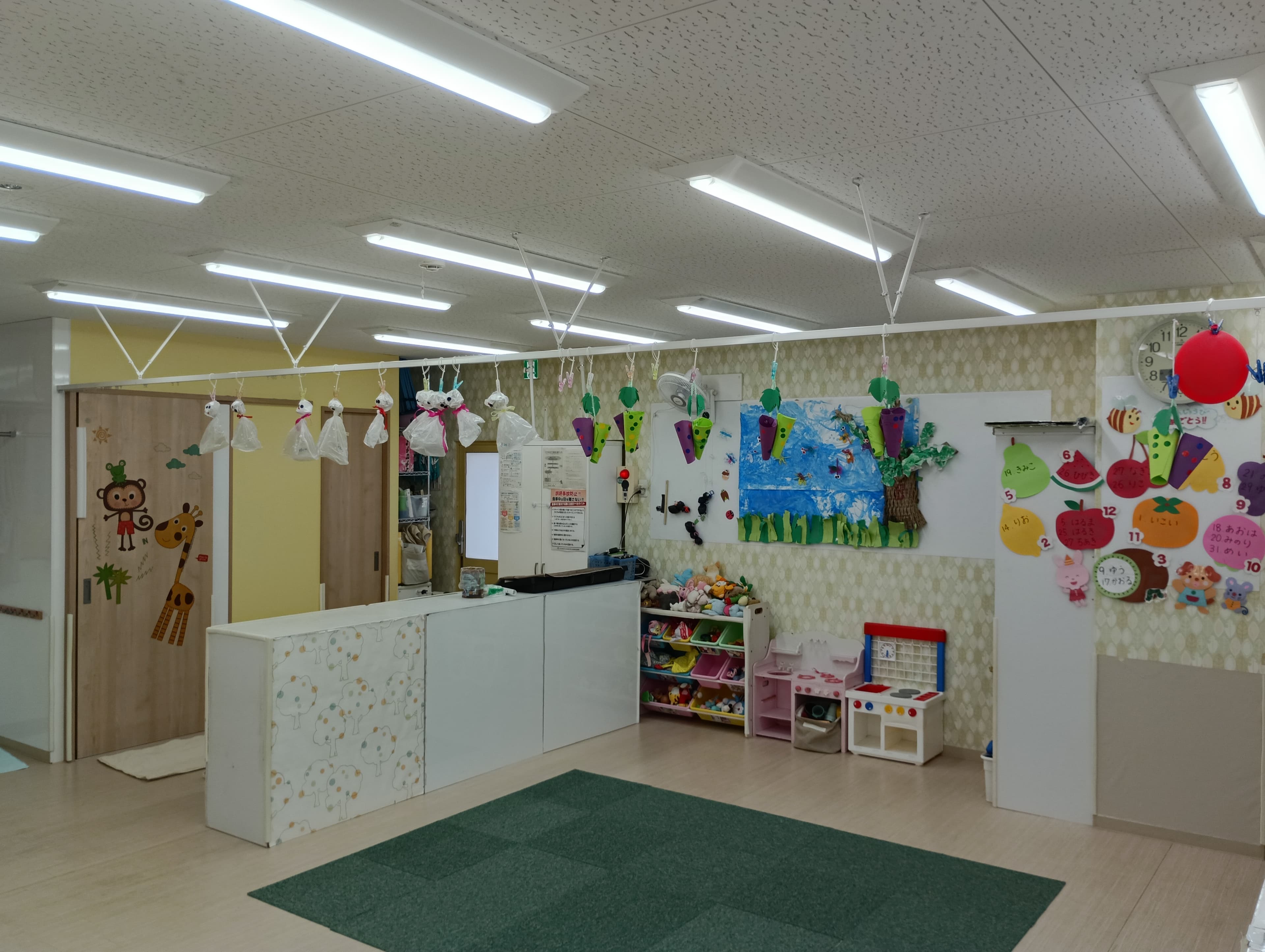 園内には子どもたちが工作した作品を多数掲示。可愛いらしい飾りつけに癒されます