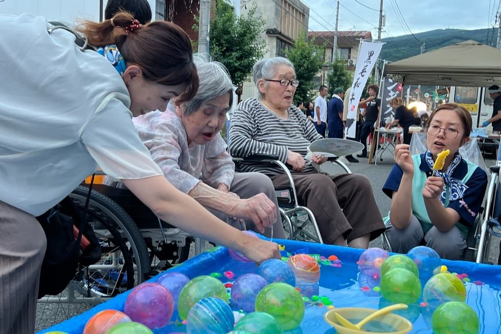 グループホームかなえは、岩手県遠野市穀町に位置しています。定員は9名で、利用者さまの要介護度は平均2.5ほど。歩行器を使用している方が多く利用されています。職員数は約8名。30~60代と幅広い世代が活躍中です。 当施設では、利用者さまの「やりたい」という気持ちに寄り添い、願いの実現をサポートしています。利用者さま一人ひとりと積極的にコミュニケーションを取り、行きたい場所や食べたいものなどをヒアリング。過去には、「海鮮丼を食べたい」という利用者さまの希望に応え、外食しに行ったこともありました。自宅と同様にやりたいことができる環境づくりに尽力し、利用者さまにとっての「第二の我が家」を目指しています。 利用者さまの笑顔や喜ぶ姿が見られることも当施設の魅力です。商店街の夏祭りに参加した際には、ヨーヨー釣りを楽しむ姿や、パイナップルをうれしそうに頬張る姿などもありました。利用者さまと一緒に楽しい思い出を作れるとともに、いつもと違う様子や表情を見られることが職員のやりがいにつながっています。