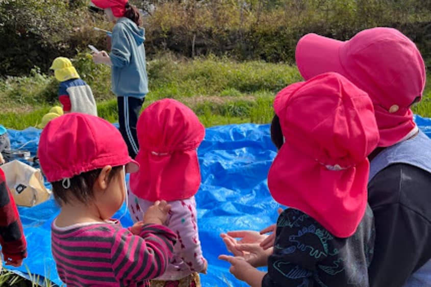 みいづ保育園は、1952年に創立された歴史ある保育園です。市内循環バス「白髭神社前」停留所から徒歩約30秒と、アクセスしやすい場所にあります。 当園は、自然保育に力を入れており、子どもたちと自然の中で毎日を過ごせるのが大きな特徴です。広い園庭と園に隣接する畑が、園児たちの主な遊び場。畑で川を作ったり、泥遊びや虫取りをしたりと、思い思いの時間を過ごしています。 当園には、子どもたちの就学前の大切な6年間を、豊かな自然の中で過ごしてほしいという思いがあります。自然の姿や楽しさ、においなどを、かけがえのない思い出として心に残してほしいという考えです。自然から着想を得た保育を実践しており、たとえば園庭では、そこに咲く花を折り紙で制作したり、その花が登場する歌をみんなで歌ったりすることも。子どもたちを取り巻く環境を最大限に活かし、一人ひとりの成長を支えています。