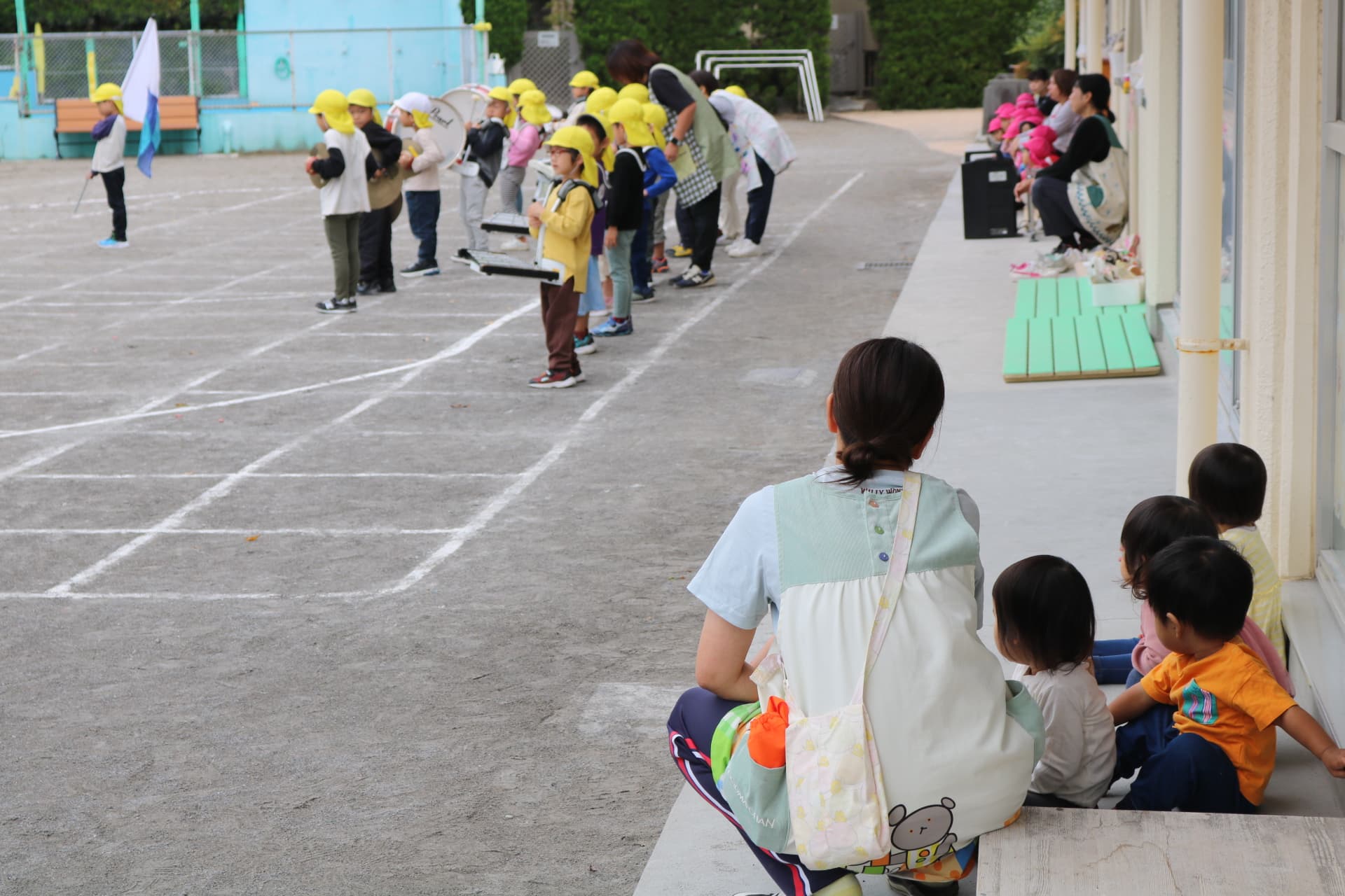 親子2代で通ってくださるご家庭やご兄弟で在園しているお子さまが多いです。運動会の練習では、下の子たちがお兄ちゃん・お姉ちゃんの頑張る姿を見学したり、一緒に応援したりする光景も見られます。