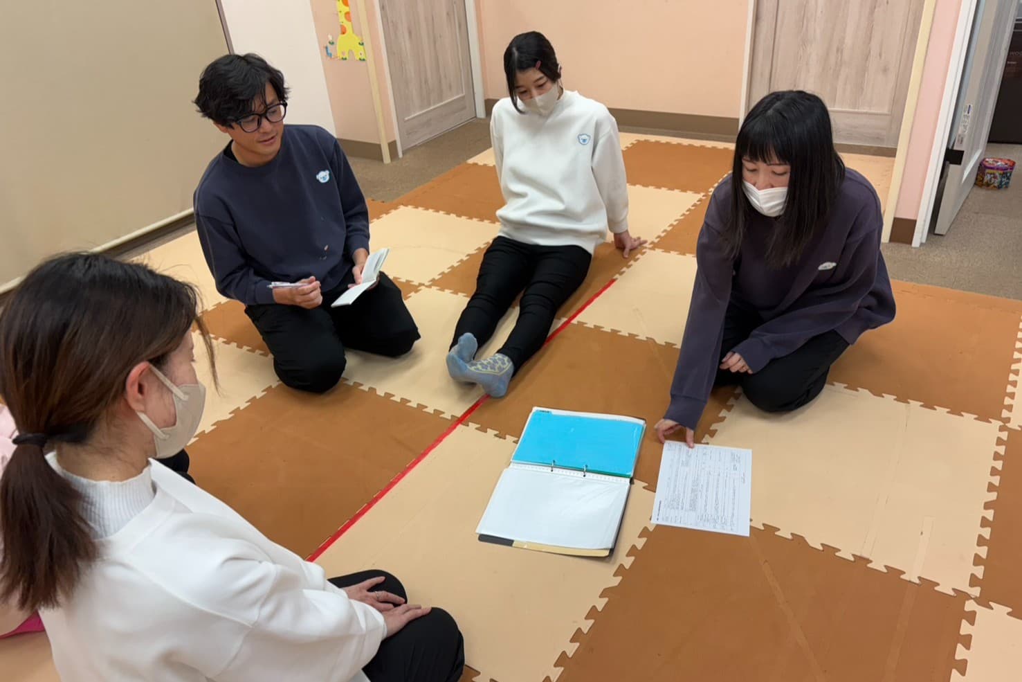 入職後1ヶ月の法人研修では、レッスンの進め方や課題に込められた意味、発達に関する知識など、療育の根幹となる部分を学ぶ時間が多かったです。基礎をしっかりと理解でき、ためになる内容でした。
