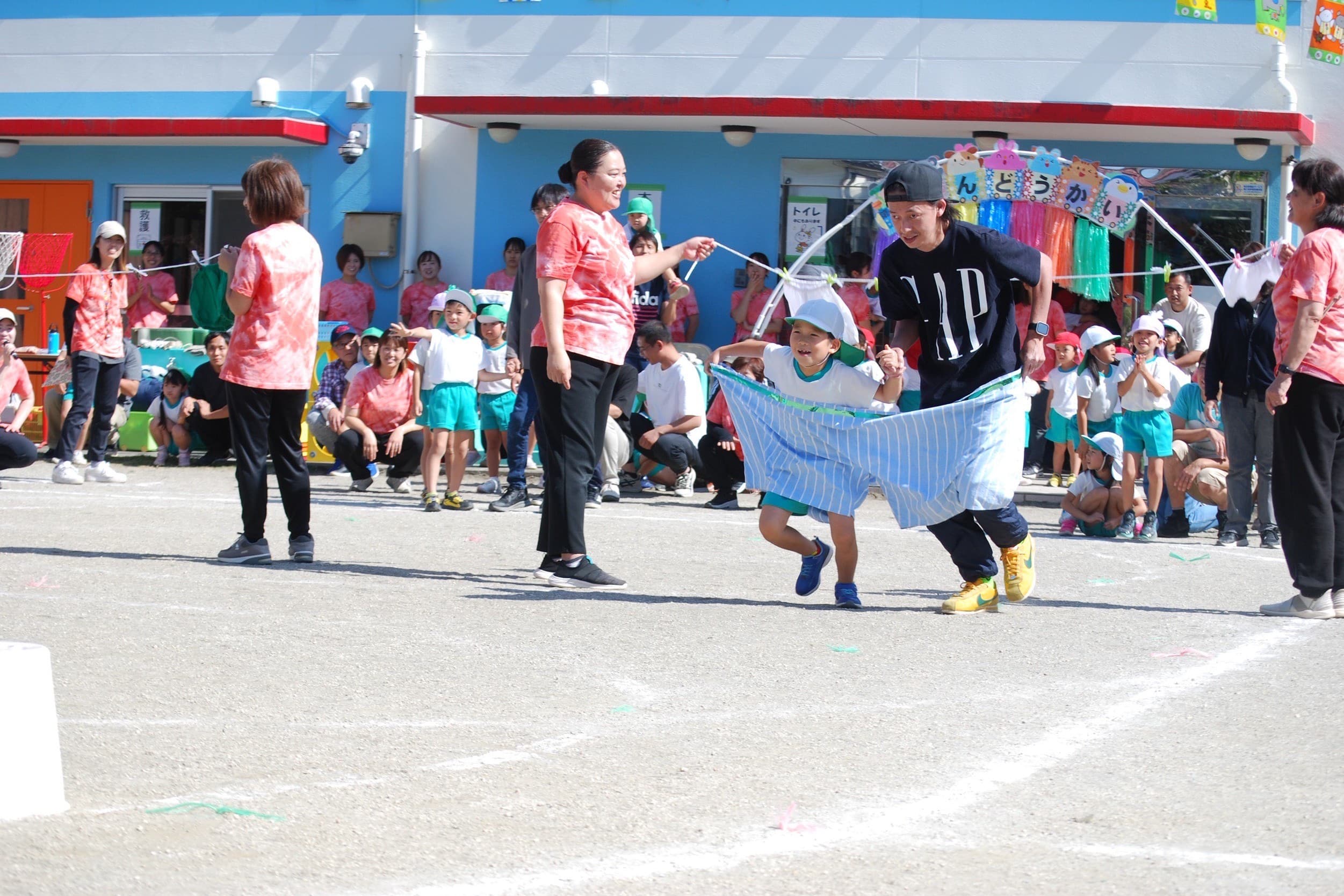 ふきのさと くじらルームは、併設している特別養護老人ホーム 葺きの里の入居者さまや職員の方たちと交流できるあたたかな環境です。当園の職員とお子さまが庭で遊んでいる際に、施設の入居者さまが手を振ってくださる場面も。施設にはデイサービスも開設されているため、朝の挨拶を交わしたり、帰りにお見送りをしたりと関わりが活発です。園の職員やお子さまたちを見守っていただき、安心感や人とのつながりを実感できます。 また、イベントを開催する際には施設の方々と連携をとることが多く、良好な協力体制を構築。たとえば、運動会では施設長に挨拶を担当していただいたり、ハロウィンといった季節イベントを協力しながら行ったりしています。施設の事務所から当園を頼ってくださるシーンもあり、助け合いの文化が浸透。開園から長いお付き合いをとおして築いてきた施設間の信頼関係があるからこそ、職員たちも安心して交流を深めています。当園のお子さまはもちろん、施設の入居者さまの喜びにも触れられ、多世代との関わりを大切にできることが魅力です。