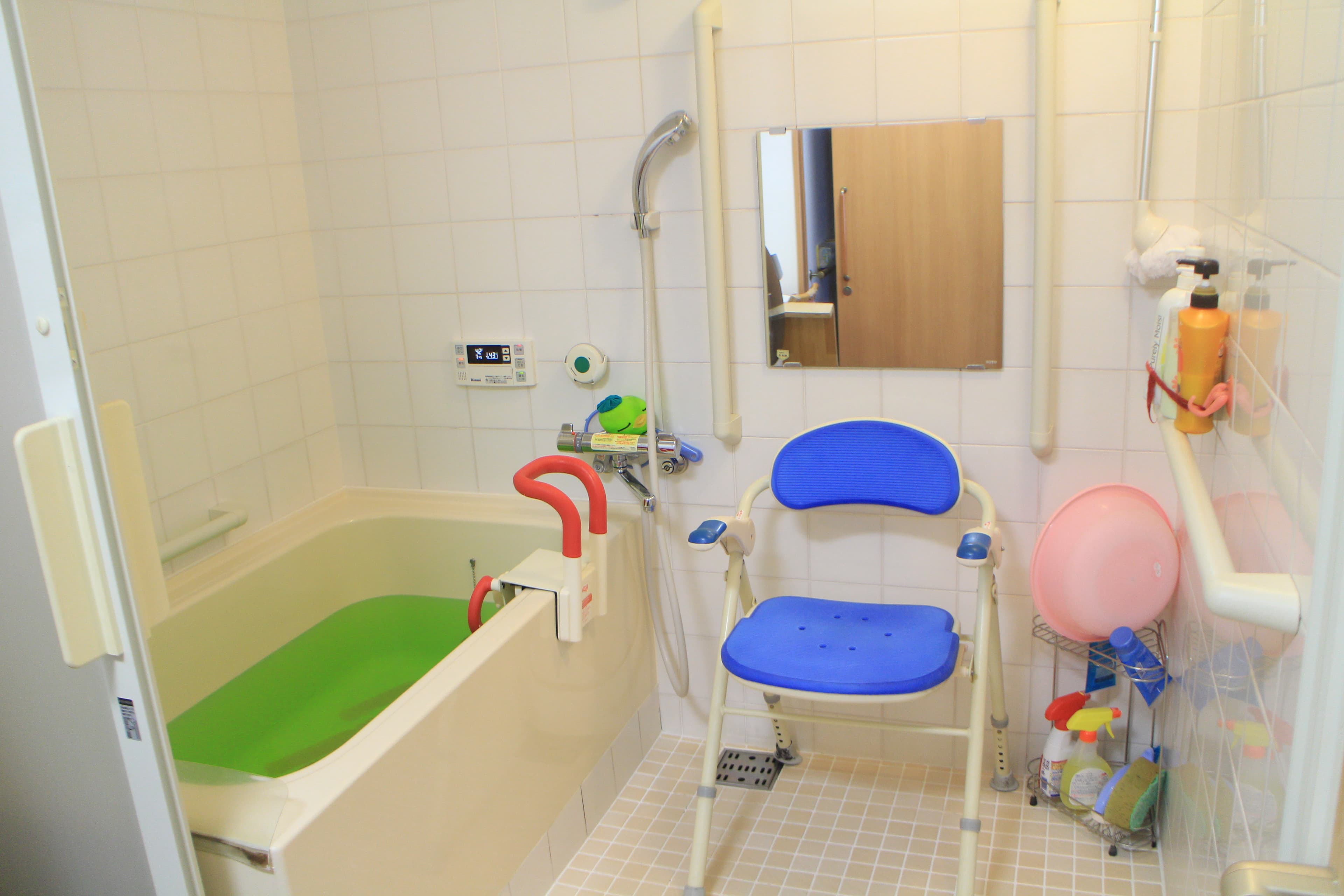 リハビリデイサービスかめハウスのメインとなる業務は入浴介助です。要支援の方の入浴も受け入れています。個室で利用者さま1人に対してスタッフが1人付く形で介助を行っているので、じっくりとコミュニケーションを取れることが魅力です。 また、利用者さまに「楽しい時間を過ごしてもらいたい」という思いのもと、スタッフと利用者さまの1対1で、毎月外出するイベントを組んでいます。公園や買い物など、個別のニーズに応えられるので、寄り添った介護を目指したい方には最適の環境です。コロナ禍においても、施設内でたこ焼きやホットケーキづくり、スイカ割りなど、外出しなくても楽しんでもらえるような企画を立てています。