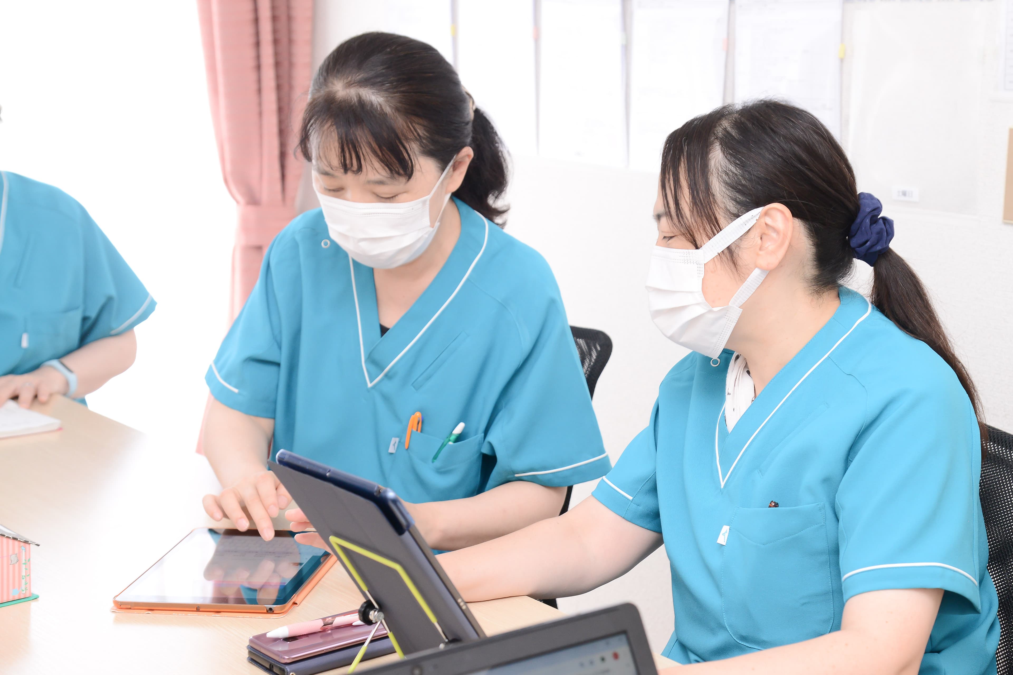 エムズ訪問看護ステーションには、ご自身もご家族も大切にしながら働ける環境があります。 ターミナルケアを必要とされる患者さまが多い当事業所。オンコール対応はありますが、日曜日・祝日休み、かつ完全週休2日制なので、身体をしっかり休めながら働けます。 基本的に残業はありませんが、コロナ禍でより慎重な申し送り・情報共有を行っているので、ときには業務時間内に記録が終わらないことも。都合があって自宅での入力を希望する職員には、iPadを貸し出すなど柔軟に対応をし、お子さまを待たせてしまったり、残務に対して気負いすぎたりせずに働けるよう配慮しています。育児などご家庭の都合がある方、ご希望の働き方がある方はまずご相談ください。