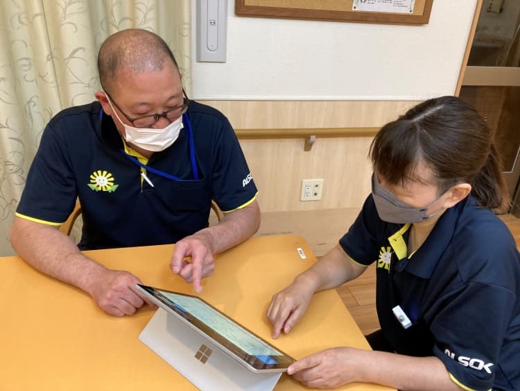 「眠りSCAN」などICTの導入に注力。記録はタブレットで行っています
