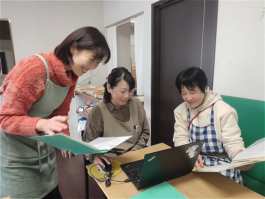 いちょう工房ゆぎは、利用者さんと長期的に関われる職場です。開設から約20年通い続けている利用者さんもいらっしゃり、時間をかけて信頼関係を築けます。数ヶ月から年単位で利用者さんのできることが増えていく中で、その成長の瞬間を間近で見られることは、この仕事ならではの喜びです。 また、当事業所では情報共有を密に行っているため、未経験者でも安心して業務にあたれます。毎日の業務は朝のミーティングから始まり、その日の状況を全員で確認。夕方には記録を書きながら、雑談も交えて振り返りを実施します。この時間に利用者さんごとの対応方法も共有するため、困ったことを相談可能です。さらに月に1回の職員会議では、事例検討など、より深い話し合いの場を設けています。日々の情報共有から定期的な振り返りまで、複数の機会を通じて利用者さん一人ひとりに合った支援を考えられます。