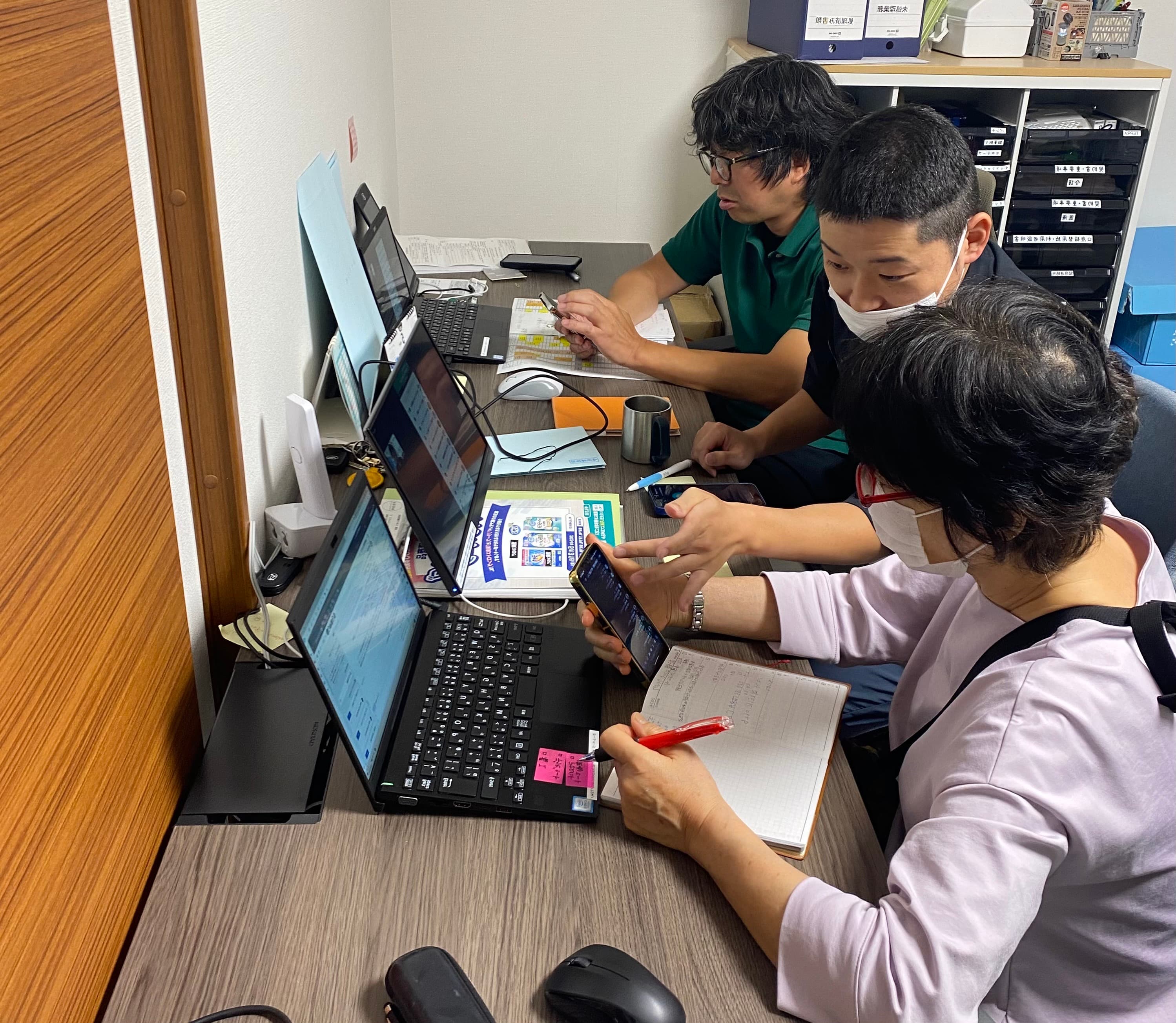 タツミ訪問看護ステーションでは、週4日以上勤務するスタッフには、スマートフォンを貸与。スマートフォンには記録用のソフトが入っており、利用者さまの状態や過去の処置内容などを確認できます。事業所内の連絡手段はメッセージアプリを活用。困った時は先輩や管理者にすぐに相談することも可能です。他職種との連携も図りやすく、周りと協力し合いながら働けます。 また、当事業所はチーム制を採用しており、複数のスタッフが同じ利用者さまを担当。そのため、利用者さまの状態や看護の方法について悩みがあれば、チーム内で解決に向けて話し合っています。チーム全体で利用者さまをサポートしていけるため、1人で悩みを抱え込むこともありません。新人さんも周りに頼りやすいため、不安なく業務に取り組める環境です。
