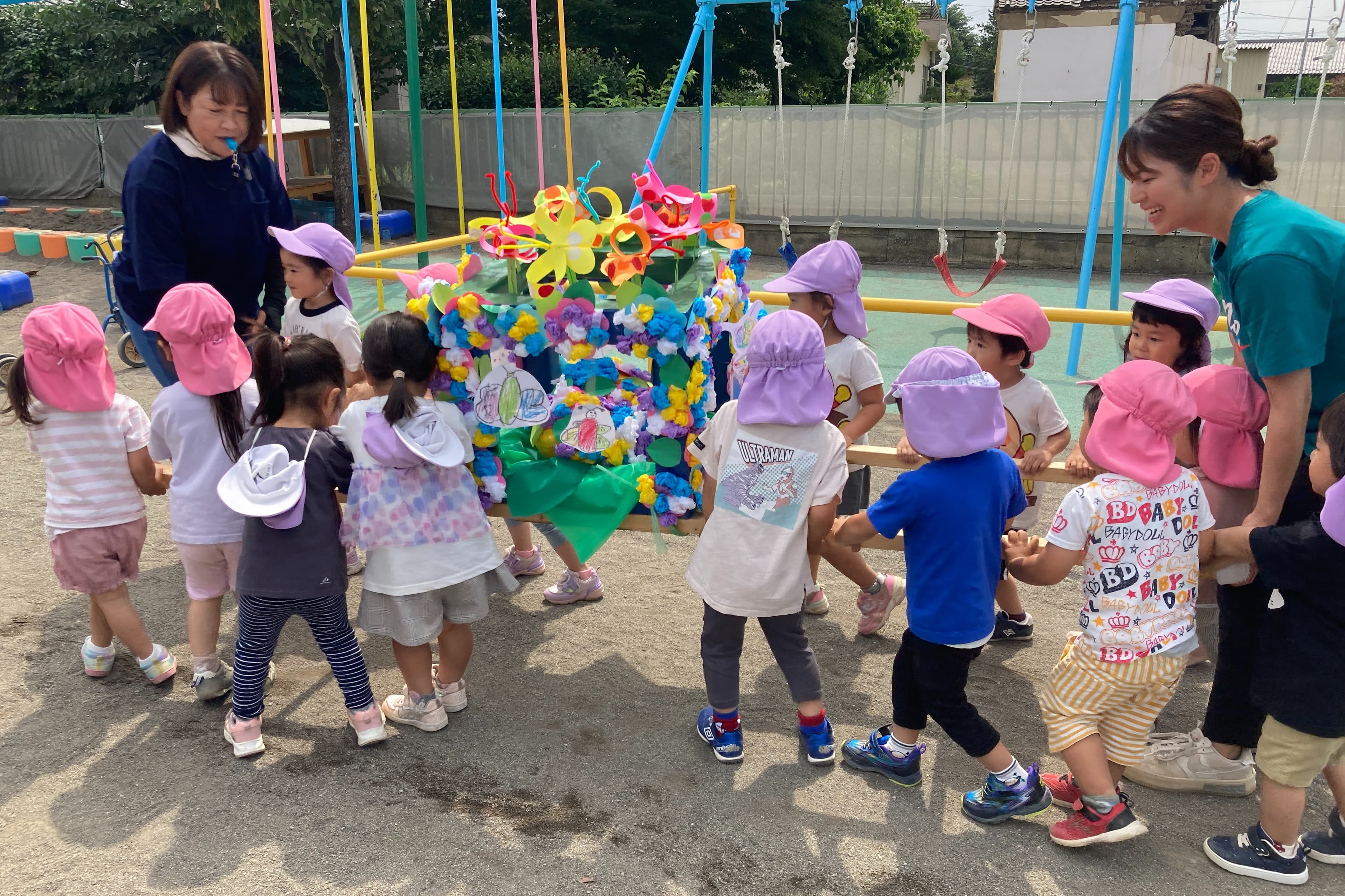 【取材】旭保育園は、職員が長期的に働き続けられる職場です。残業は通常の運営日だけでなく、運動会や発表会など行事の時期にもほとんど発生しません。行事の前日には、保護者の方に協力をお願いし、午後1時にはお子さまを迎えに来ていただいています。職員は午後の時間を行事の準備に当てられるため、業務時間内で作業を終えることが可能です。また、行事の飾り付けには主にお子さまの作品を使用することで、装飾づくりにかかる職員の負担を削減しています。 さらに、有休消化率は約85%と高く、職員がしっかりと有休を取得できるように園長が声掛けを行っています。また、家賃や住宅などの費用の補助も実施しており、職員のなかには旭保育園の近くに住居を構えている人も。職員が安定して働ける制度をしっかりと設けているところも、当園の魅力です。