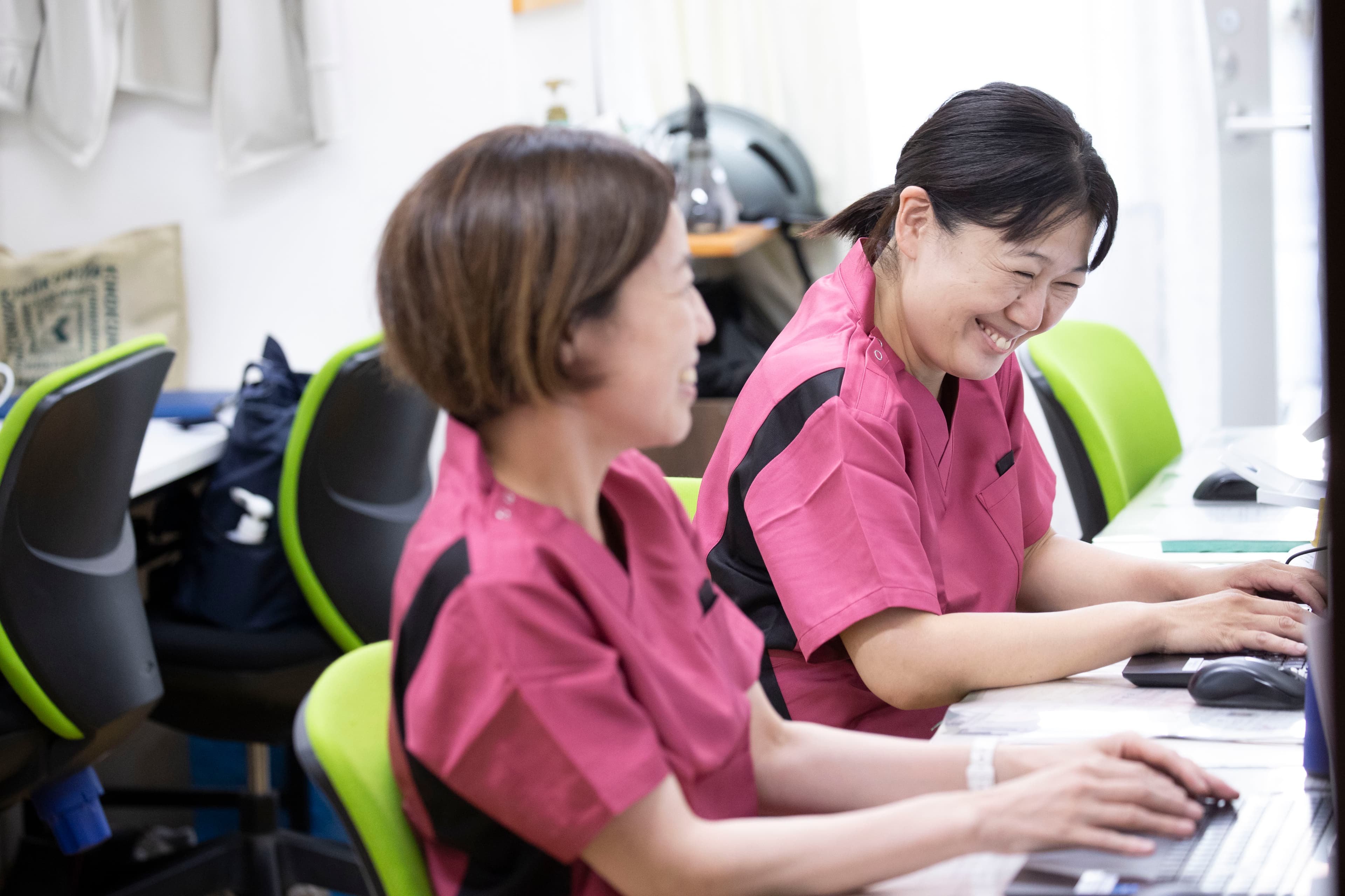 【取材】ひらくクリニックは、透析クリニックでの勤務が初めての方も安心の教育体制が強みです。 現場では、先輩から業務を教えてもらったうえで実際に取り組んだあと、フィードバックを受けて再度チャレンジするという流れで教えていきます。教育担当は固定で、メインとサブの2名体制。基本的にはメイン担当が教えていきますが、状況に応じてサブ担当が指導を実施。教育担当者が互いに教育の進捗状況や業務の習得度合いなどを共有しています。 当クリニックでは、スタッフの学習意欲を応援しています。不定期で開催している勉強会は、スタッフが講師となりクリニック内で実施。外部から業者の方を招いて開催するケースもあります。くわえて、外部から勉強会の案内がきた際は、スタッフは興味のある内容のものに任意で参加可能です。積極的に学ぶ姿勢のある方は、きっとモチベーションを高く保って働けます。